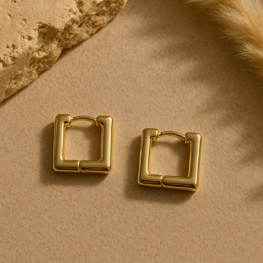 ANTI TARNISH ELEGANT SQUARE SHAPE HOOP EARRING
