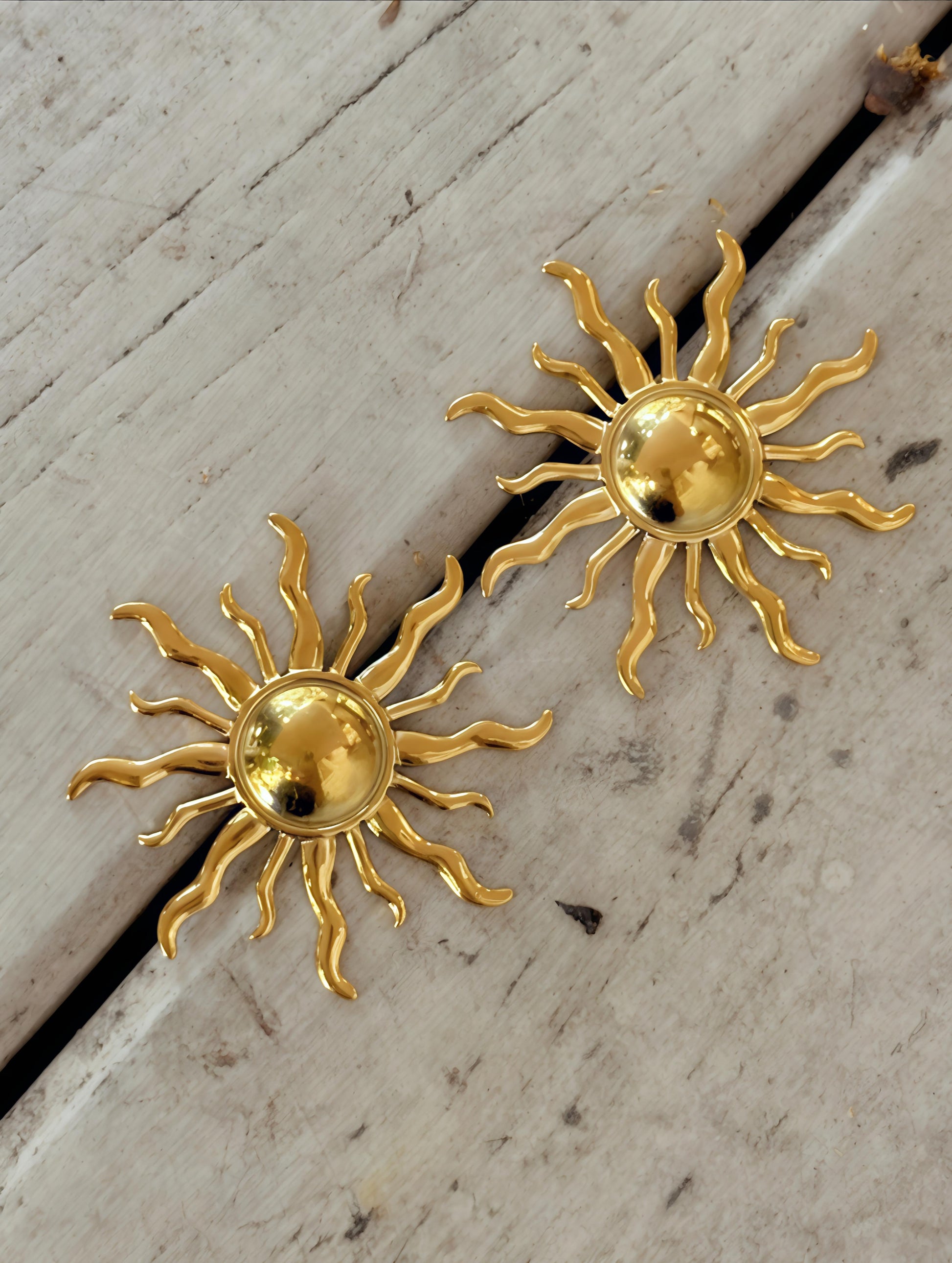 Brighten your day with these playful Antitarnish Sun rays Earrings! Featuring a trendy design, they're waterproof and hypoallergenic—perfect for keeping your look glowing without any skin worries. Whether you're out in the sun or turning heads indoors, these fun earrings bring a radiant splash of style to every outfit.Designed to be lightweight, they allow for effortless wear throughout your day.Designed to be lightweight, they allow for effortless wear throughout your day