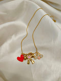 Anti-tarnish Red Heart Pink Honeybee Charms Pendant Chain