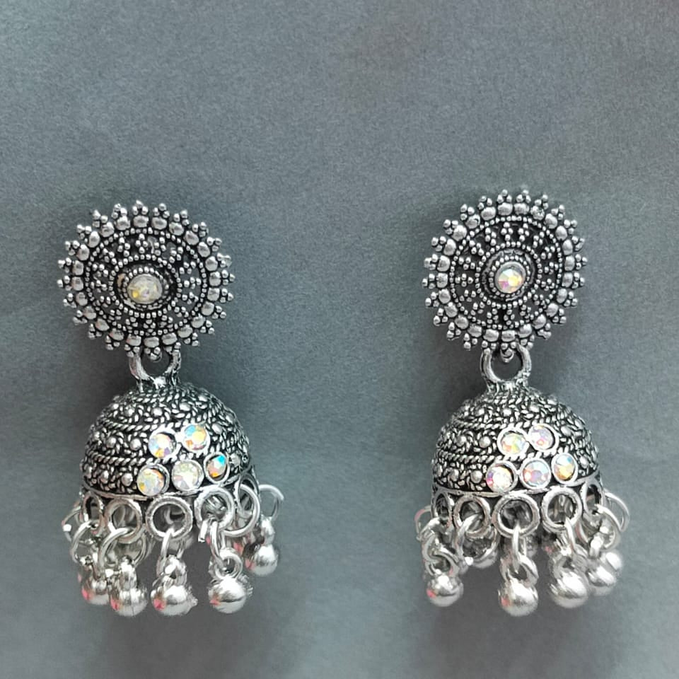 From dandiya nights to divine vibes our latest Crystal Shine Mandala Oxidized Jhumkis Earring is all you need. Perfect jewels for nine nights of celebration.