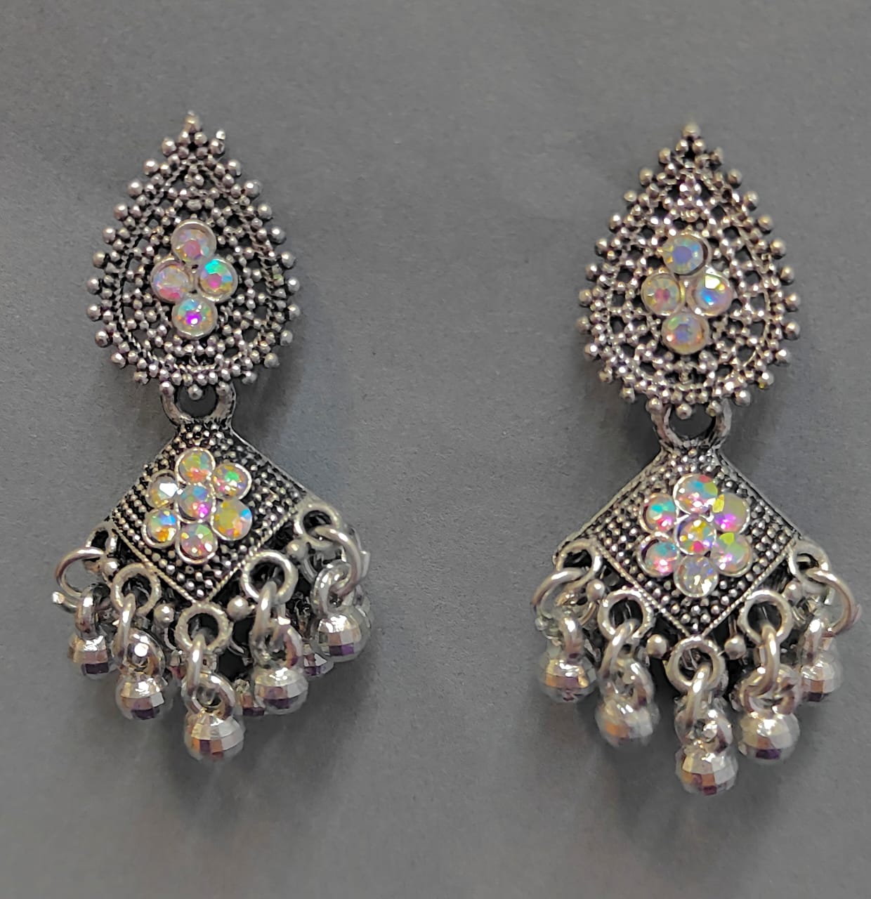 Crystal Shine Oxidized Jhumkis